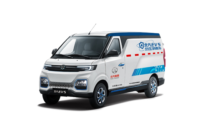 北汽EV5紫外线消毒物流车则是通过加装车载医用级紫外线消毒灯,可向外辐射波长为253.7nm的紫外线,以杀菌能力最强的紫外线波段来消杀多种病菌,为城市物流货物提供一个安全、无污染的运输空间。同样,北汽EV5负压消毒车,利用技术手段,使车内气压低于外界大气压,空气在自由流动时只能由车外流向车内,可将车内的空气进行无害化处理后排出,避免更多的人感染,在救治和转运传染病等特殊疾病时可最大限度地减少医务人员交叉感染的机率。