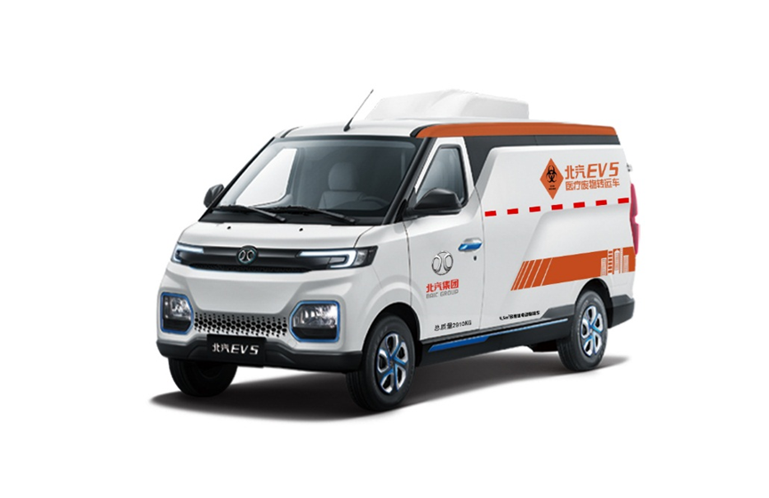 医疗物流领域中,除了冷链需要高度关注外,医疗废物处置也困扰着行业发展,医疗废物的处理不到位也与运输车辆有着极大的关系。为了提升医疗废物运输效率,北汽集团发挥技术创新优势,将北汽EV5系列延伸到医疗废物转运车领域。