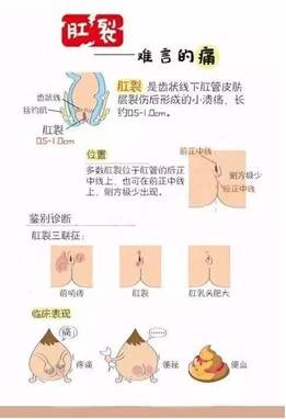 肛裂(在肛门的裂隙)是一种常见的肛门直肠疾病,通常伴随剧烈的疼痛。肛裂是肛管或从皮肤黏膜交界处延伸到齿状线的肛门边缘的伤口或裂隙。肛裂可以是急性或慢性起病。该疾病可以发生在各个年龄段(肛裂是婴儿直肠出血最常见的原因),但通常见于青年人。