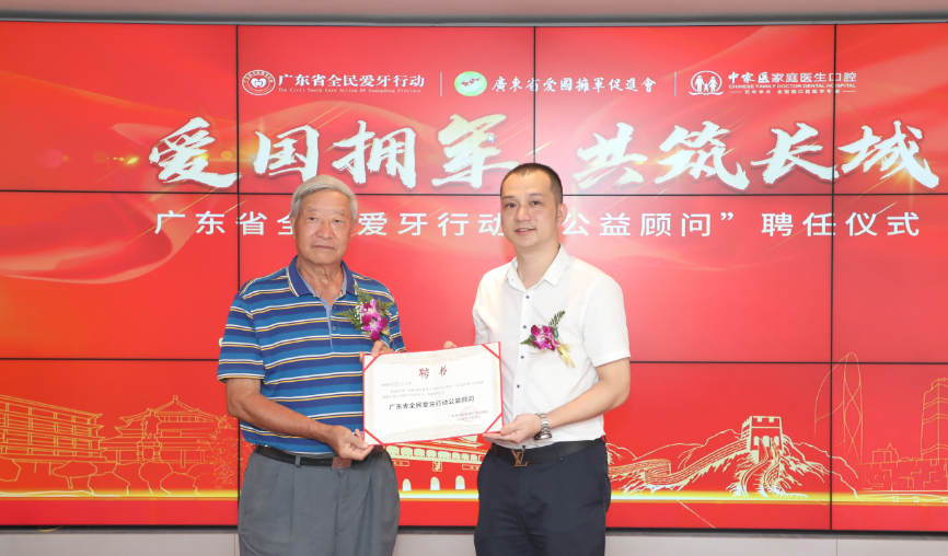 2021年8月26日,广东省爱国拥军促进会正式授牌中家医家庭医生口腔为”广东省爱国拥军促进会副会长单位”,同时启动”广东省口腔健康双拥公益计划“,军人军属到中家医家庭医生口腔看牙可享受从1000元到10000元不同级别的公益补贴。