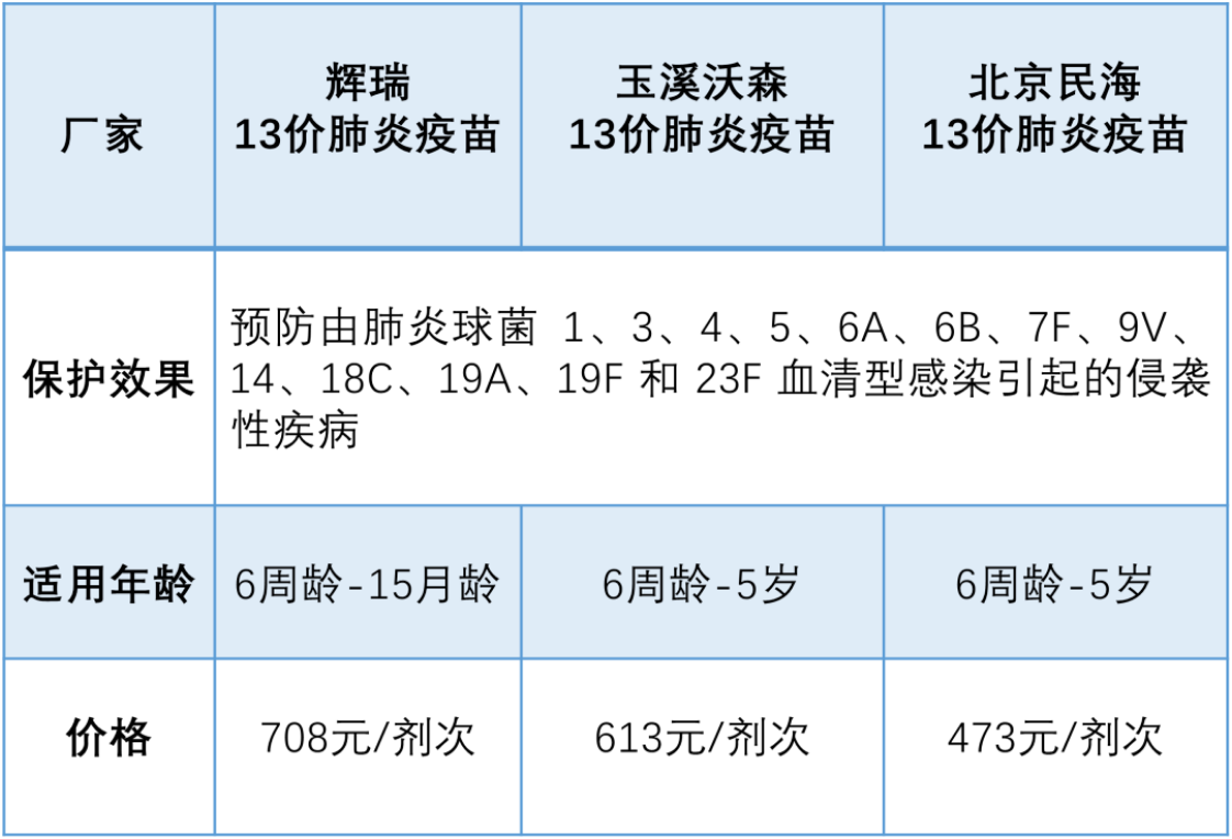 目前我国批准上市的13价肺炎球菌多糖结合疫苗有三种: