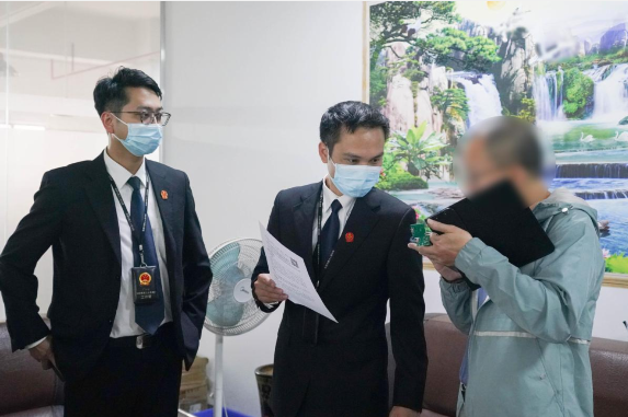 随后,执行干警抵达凤岗一家皮具厂。外出回来的皮具厂老板看到厂内的一行执行干警,知道是“躲不掉”了,于是主动表示愿意支付拖欠工资。