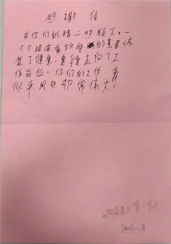 “看似平凡却非常伟大” 患者写信点赞深圳天元中医肛肠医院