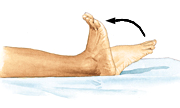 脚踝旋转运动:腿部伸直、翘起脚板,脚掌画圆(一次顺时针、一次逆时针转动),做十次,然后换另一只脚做,一组运动作左右脚各做十次,每天可作三到五次。