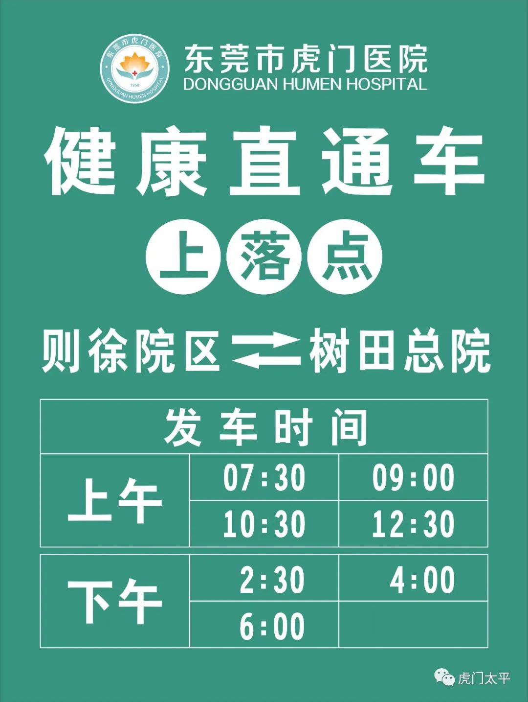 同时,树田总院和则徐院区之间将开通“健康直通车”,为就诊群众提供便捷、免费的交通往返服务。