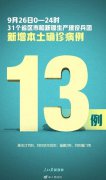 2021-09-28 09:56:24 | 医疗原标题:31省区市新增本土确诊13例,其中黑龙江新增11例本土确诊 9月26日024时,31个省(自治区、直辖市)和新...