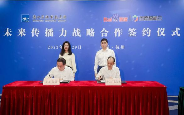 广电领域数智化转型正在人工智能的驱动下深化提速。9月29日,浙江广播电视集团(以下简称“浙江广电”)携手百度以“未来传播力“为主题举办战略签约仪式,推进新一轮智慧媒体合作。
