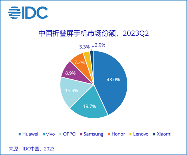 IDC数据显示,2023年第二季度和上半年,华为稳固占据国内折叠屏手机市场第一的位置,市场份额分别达到43.0%和35.0%,轻薄旗舰Mate X3上市以来一直一机难求。